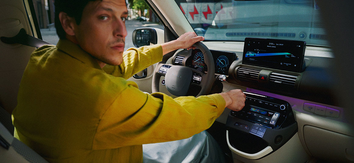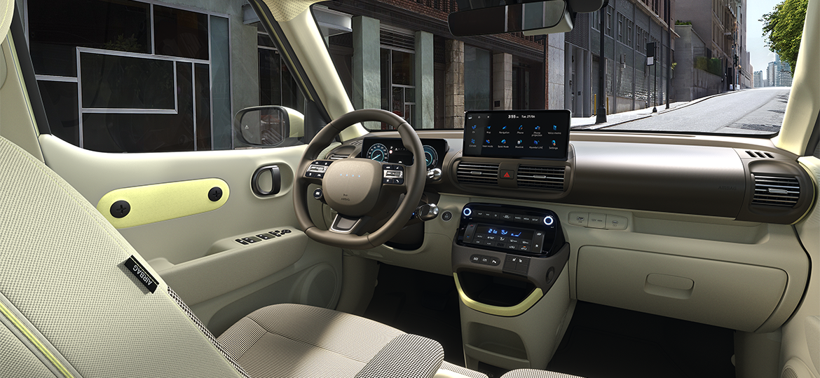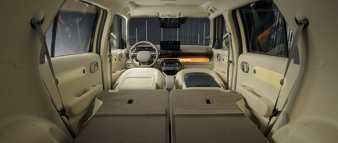 Gracias a su plataforma eléctrica con suelo plano, su silueta de SUV de techo alto y los asientos traseros abatibles, el Hyundai INSTER sorprende con un interior amplio e inteligente para su tamaño. Los pasajeros traseros disfrutarán de un generoso espacio para las piernas, y además, los asientos se pueden deslizar hacia adelante o hacia atrás, según necesites más capacidad en el maletero o mayor confort en la segunda fila.
